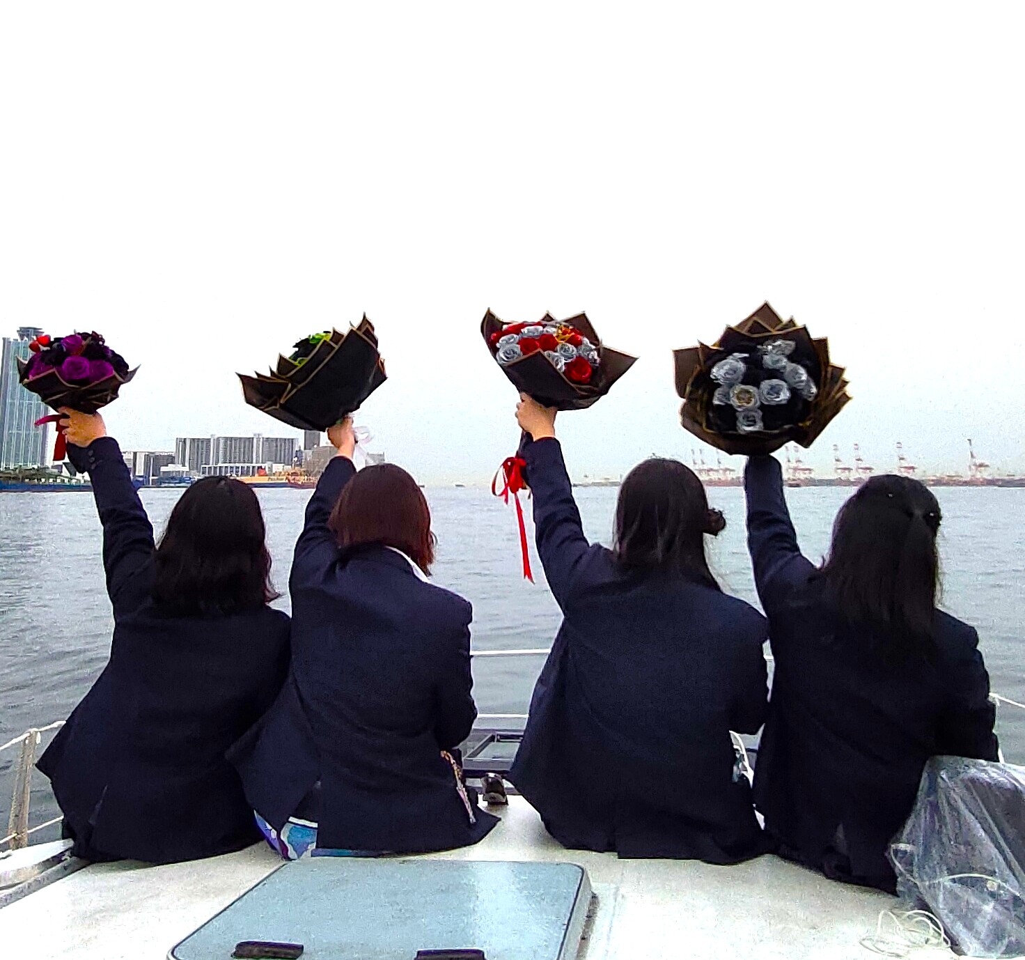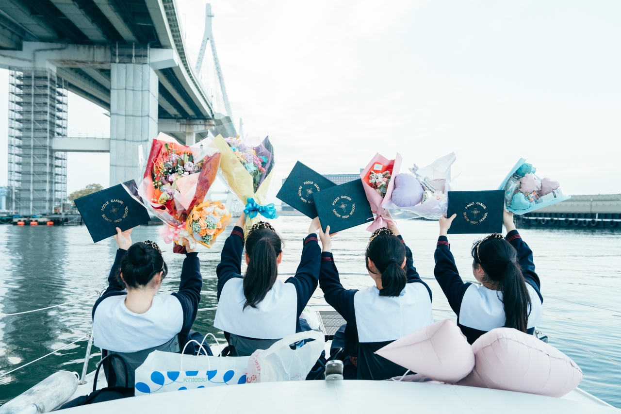 今年は約20組ほどの女子高生の皆さまの門出を、海の上でお祝いさせていただきました。